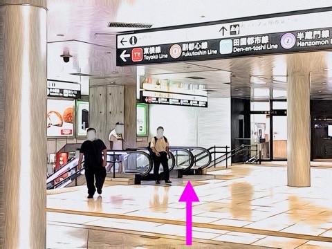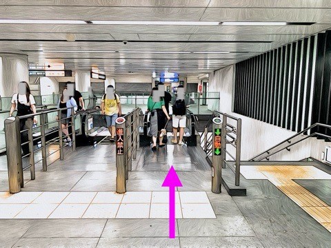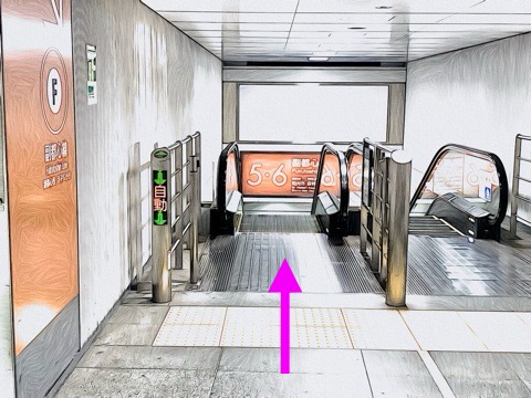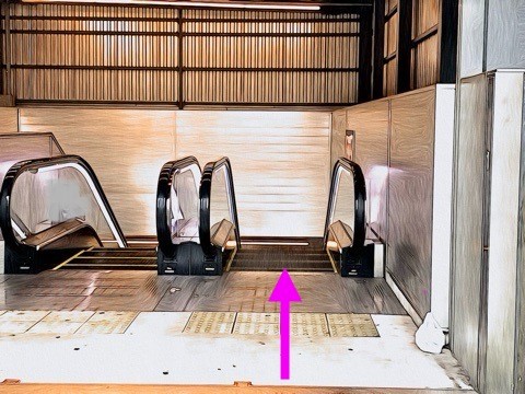 前方のエスカレーターへ