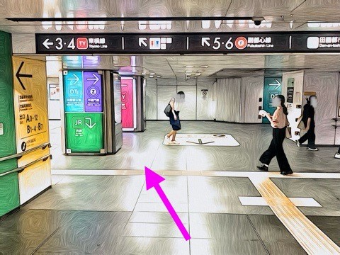 エスカレーターを降り前方へ