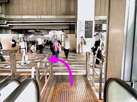 7号車3番扉(先頭から4両目)付近のエスカレーターへ