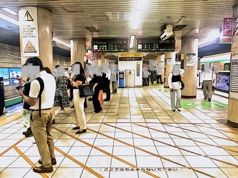 2番線が押上方面行きホーム(4号車2番扉/先頭から4両目)