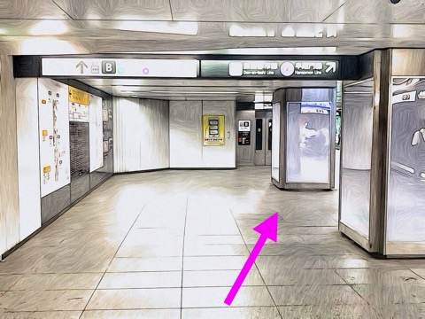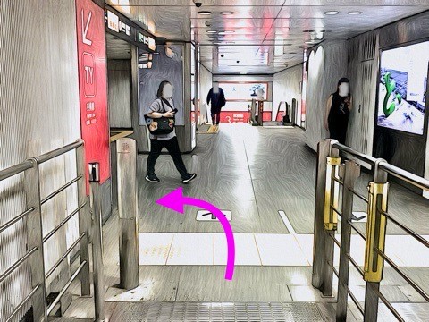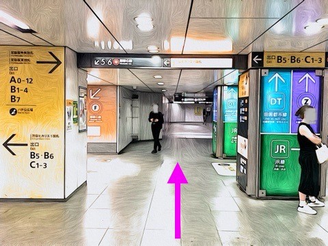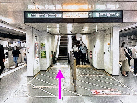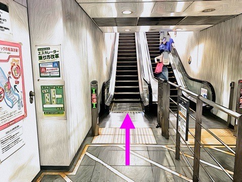 5号車1番扉(先頭から6両目)付近のエスカレーターへ