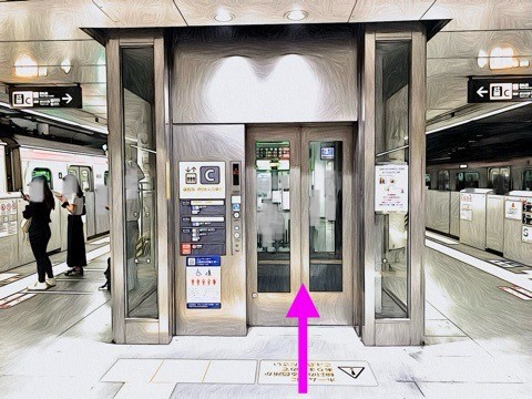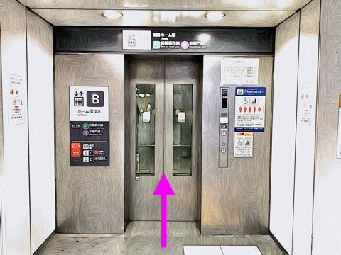 5号車3番扉(先頭から6両目)付近のエレベーターでB4Fへ