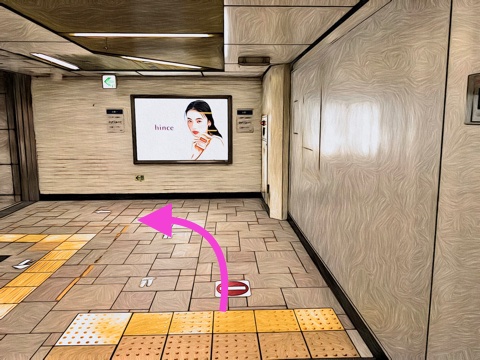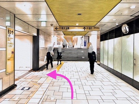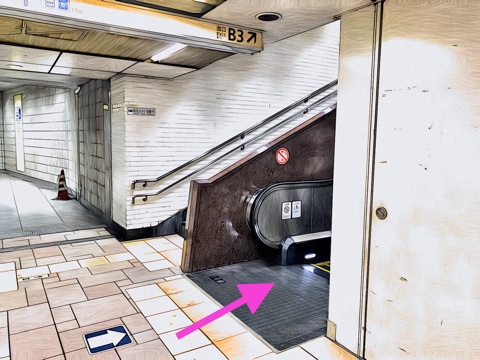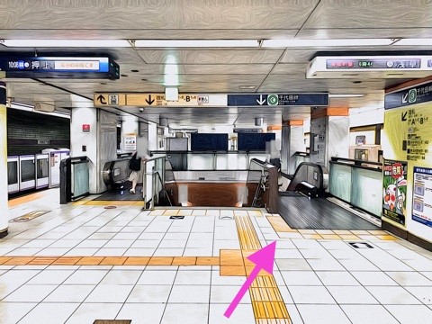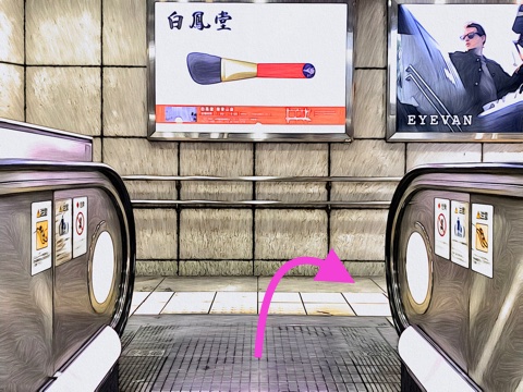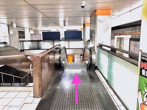 1号車3番扉(先頭から6両目)付近のエスカレーターへ