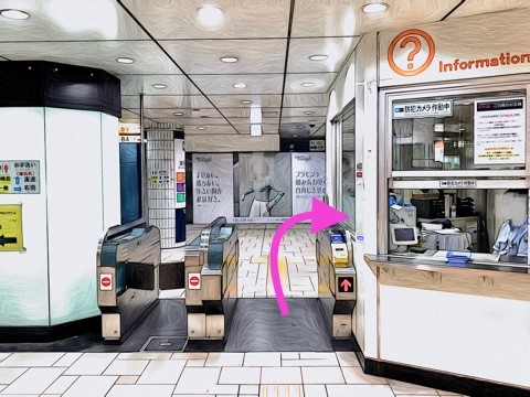 1号車3番扉(先頭から6両目)付近のエスカレーターへ