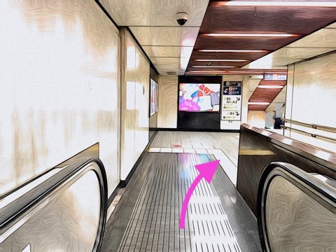 右にあるエスカレーターへ