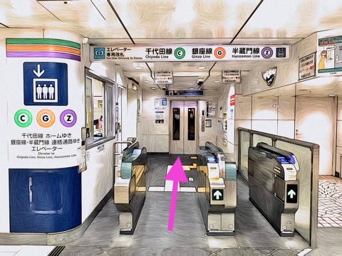 改札を入り前方のエレベーターへ