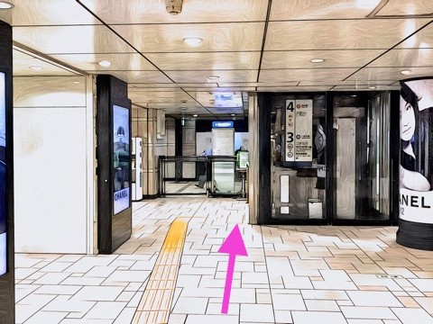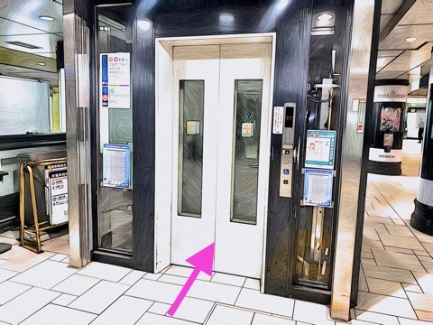 4号車1番扉(先頭から3両目)付近のエレベーターで改札階へ