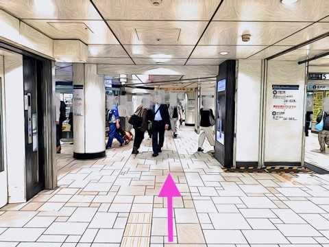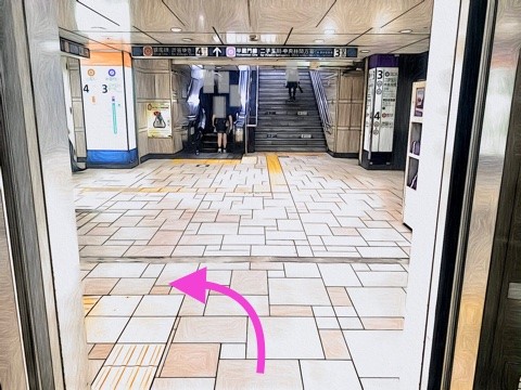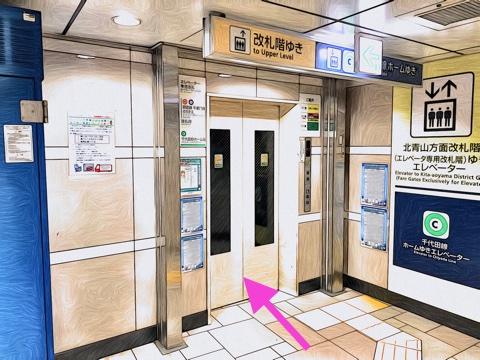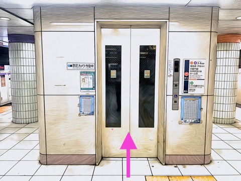 4号車2番扉(先頭から4両目)付近のエレベーターで改札階へ