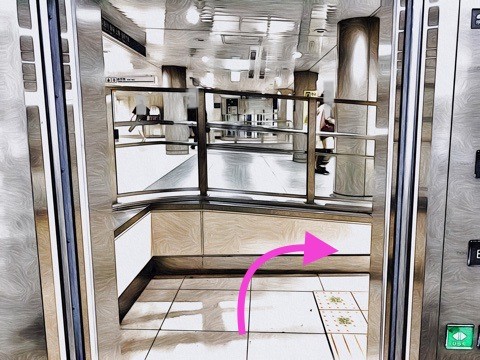 1号車1番扉(先頭から6両目)付近から左にあるエレベーターへ