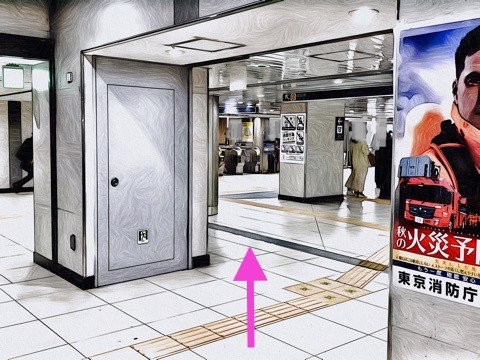 改札を入り前方にあるエレベーターへ