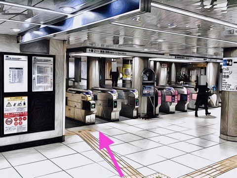 前方の改札へ
