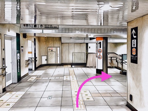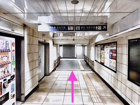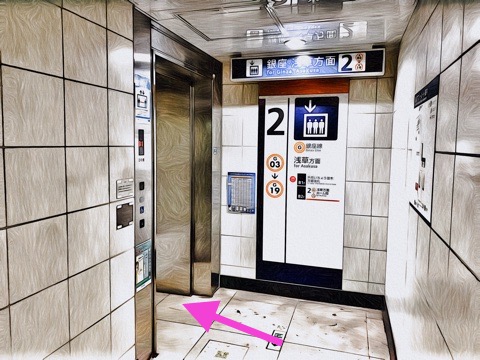 2番線が浅草方面行きホーム(6号車1番扉/先頭から1両目)