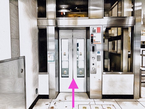 出入口2aのエレベーターへ