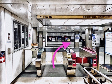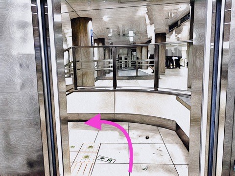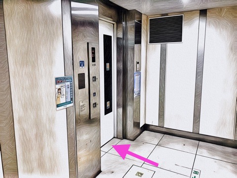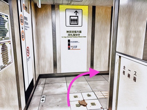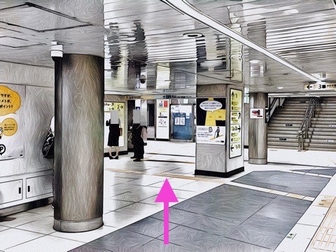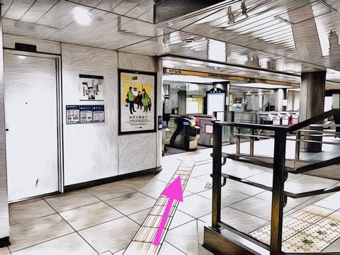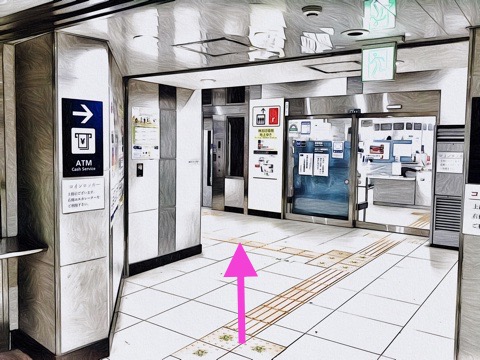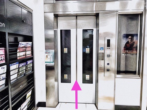 1号車1番扉(先頭から1両目)付近からエレベーターへ