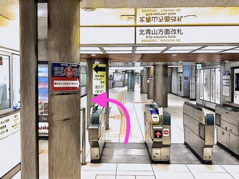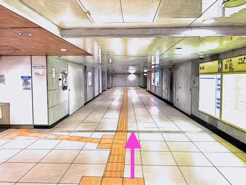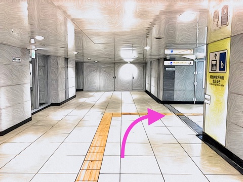 1号車1番扉(先頭から6両目)付近のエレベーターへ