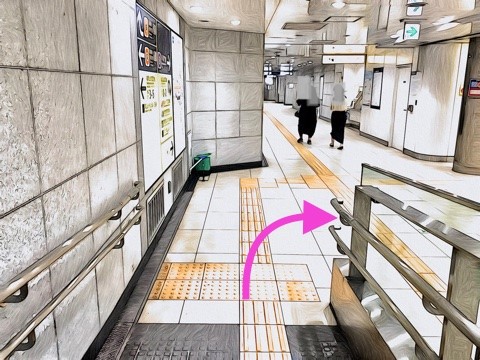 1号車1番扉(先頭から6両目)付近のエレベーターへ