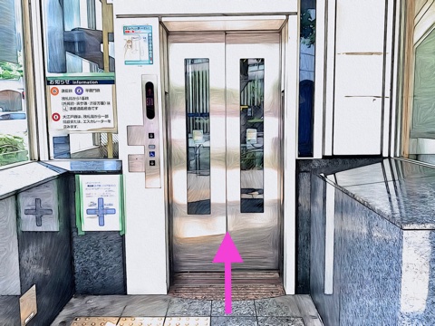 エレベーターを降り左へ