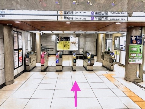 前方の改札へ