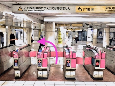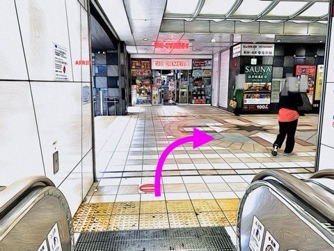 エスカレーターを降り前方の改札へ