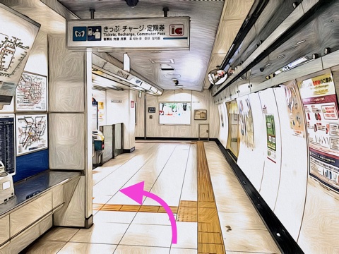 改札を入り前方へ