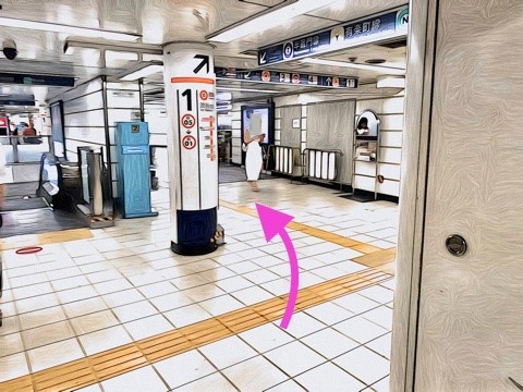 1番線が渋谷方面行きホーム(1号車1番扉/先頭から1両目)