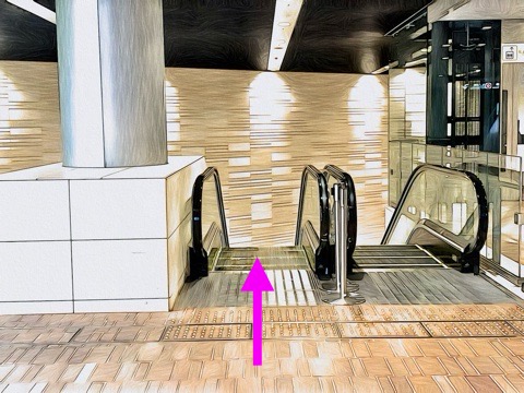 前方のエスカレーターへ