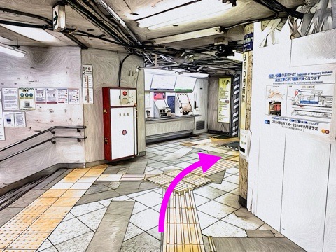 1号車3番扉(先頭から6両目)付近のスロープへ
