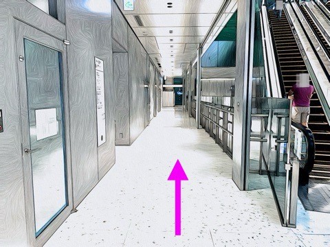 前方のエレベーターへ