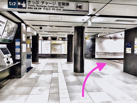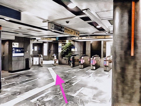 改札を出て前方へ