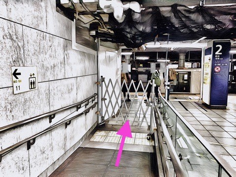 2番線が浅草方面行きホーム(1号車3番扉/先頭から6両目)