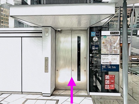 出入口A2bのエレベーターへ