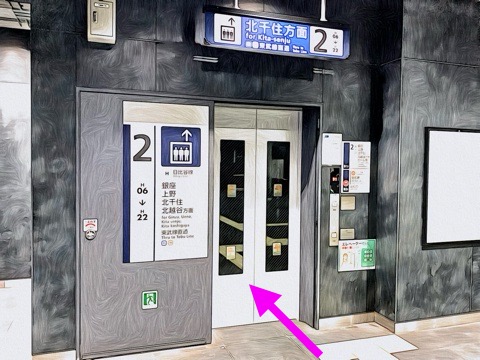 2番線が北千住方面行きホーム(4号車2番扉/先頭から4両目)
