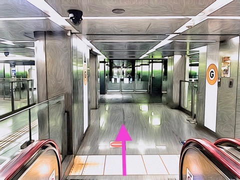 5号車2番扉(先頭から2両目)付近のエスカレーターで改札階へ