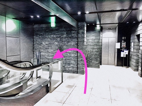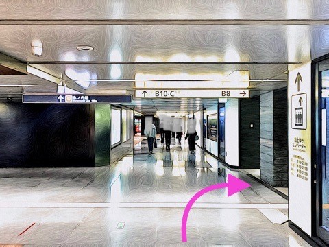 エスカレーターを降り前方へ