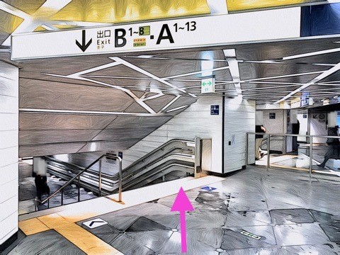 1番線が渋谷方面行きホーム(6号車1番扉/先頭から6両目)