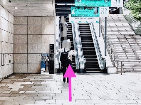 前方のエスカレーターで地上へ