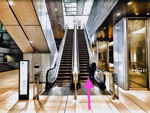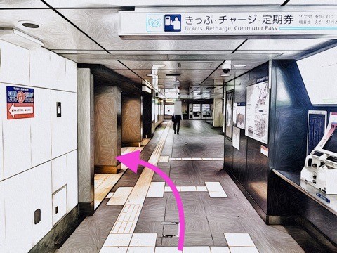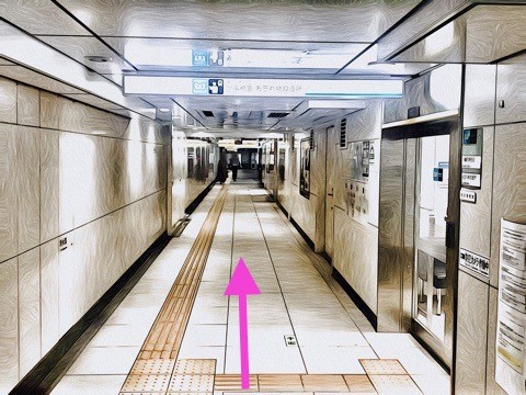 3号車2番扉(先頭から3両目)付近のエレベーターで改札階へ