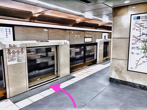 左が浅草方面行きホーム(3号車2番扉/先頭から4両目)