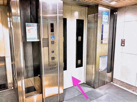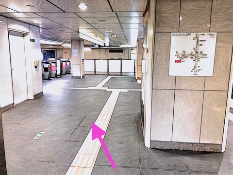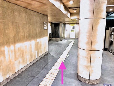 1号車1番扉(先頭から1両目)付近からエレベーターへ
