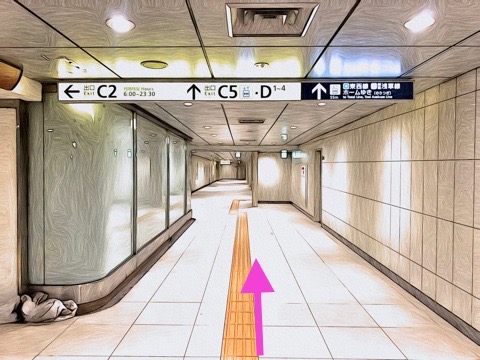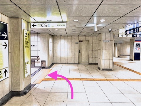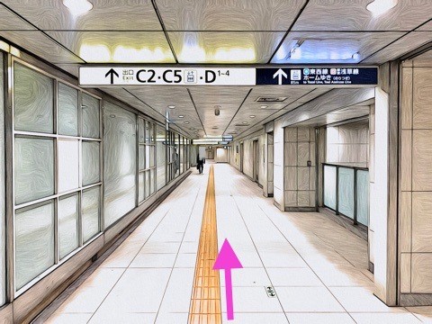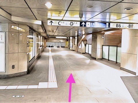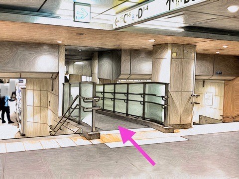 3号車3番扉(先頭から4両目)付近のエスカレーターで改札階へ