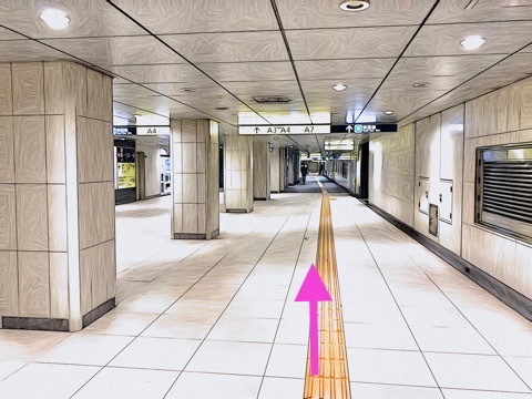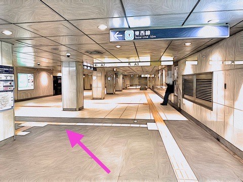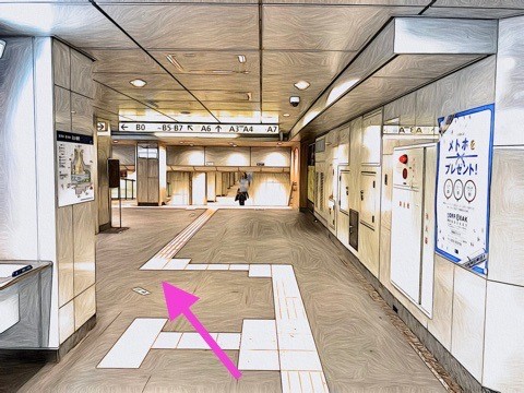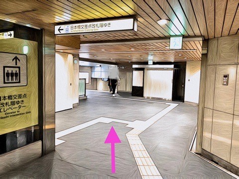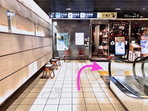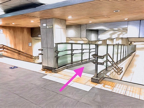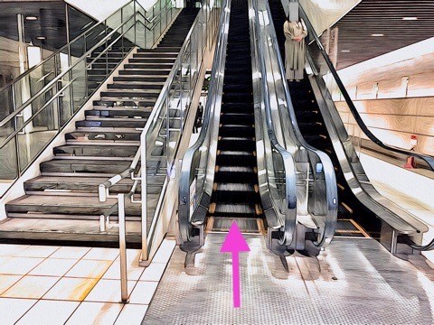 6号車3番扉(先頭から6両目)付近からエスカレーターへ