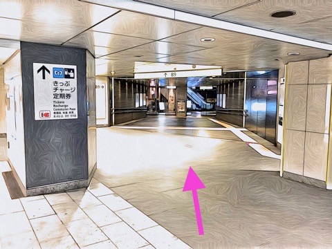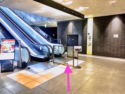 6号車3番扉(先頭から6両目)付近からエスカレーターへ