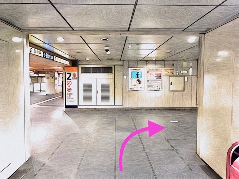 2番線が浅草方面行きホーム(3号車3番扉/先頭から4両目)