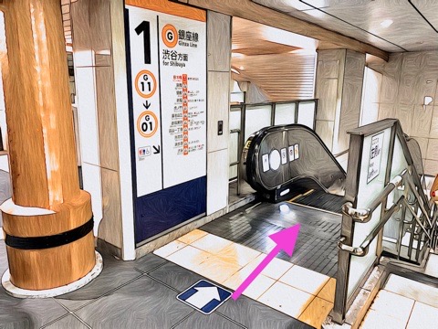 1番線が渋谷方面行きホーム(6号車3番扉/先頭から6両目)
