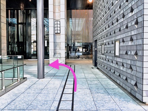 左の幅の広い改札を入り右にあるエレベーターへ