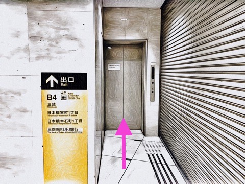 エレベーターを降り左へ