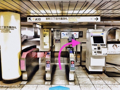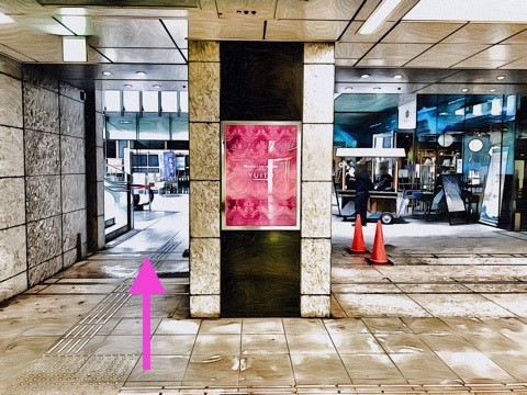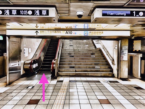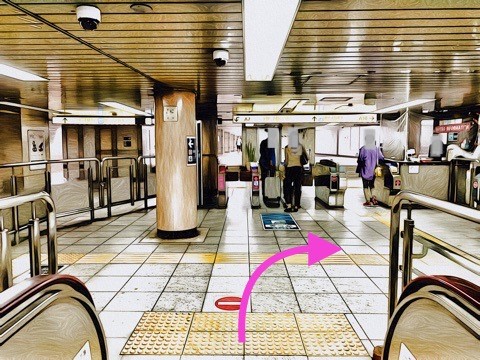 6号車3番扉(先頭から1両目)付近のエスカレーターで改札階へ