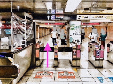 エスカレーターを降り前方の改札へ