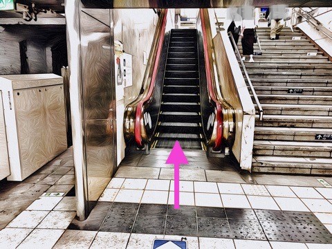 1号車1番扉(先頭から1両目)付近のエスカレーターへ