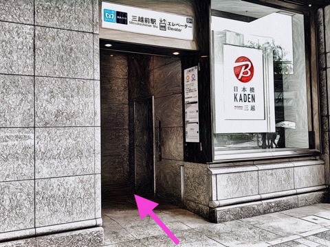 出入口B4のエレベーターへ